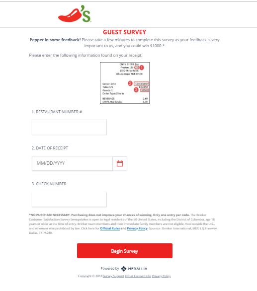Chili’s Guest Experience Survey - Win $1000 - survey.medallia.com